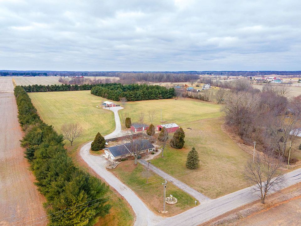 Wow! What an opportunity to have the business you have been wanting with your home and almost 19 acres! This 2 bedroom, 1 bath home has an open concept feel with hardwood flooring and a gorgeous stone fireplace. Open kitchen with all appliances included, a large bathroom with a jetted tub and walk in shower and an inviting patio area just steps from the kitchen. A 2.5 car garage is attached. This property has 3 outbuildings. One is a dog kennel/grooming business with 14 kennels, a groomer bathing area and an office/lobby. This building has 2 furnaces and AC units and vinyl plank flooring. Another outbuilding is a large barn (30x36) that is heated and insulated. The smaller outbuilding has a lean to and has a smaller office area with 4 kennels. The acreage is a mix of a hay field that is currently cash rented, a training area for your business and a shooting range area. Call for your private tour today!
