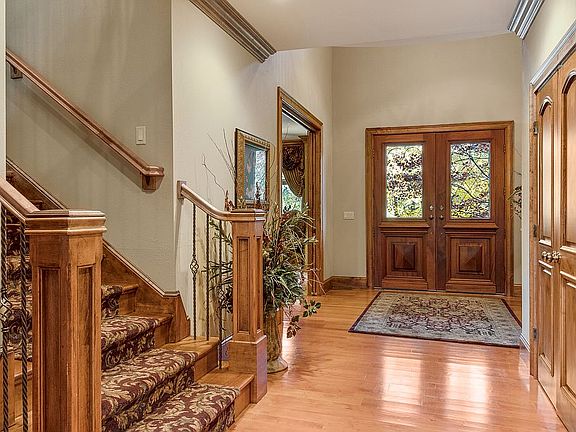 This custom home sits on 10 acres with a 2.8 acre pond on the property and Clear Creek running through the southern boundary. A main floor master suite with 5 additional bedrooms, 5 full bathrooms, 2 half baths, 3 fireplaces. You can find granite and marble throughout, custom cabinetry, custom solid wood doors and maple hardwood floors throughout most of the main level. Impressive library with custom walnut on walls and 14 foot ceiling. The large kitchen has high end appliances including Decor range, Subzero refrigerator and freezer, Bosch dishwasher as well as warming drawer and trash compactor. Kitchen completed by walk-in pantry and butler’s pantry with glass doors and shelving of upper cabinets. The home has four areas of zoned HVAC, central vacuum, foundation with internal and external drainage, large finished walkout basement with bar area complete with oven, dishwasher, ice maker and small refrigerator. City sewer, county water and deep well that feeds the irrigation system around the house. House loaded with lots of extras that need to be seen! Nearly 30 additional acres are available and can be negotiated in sale.