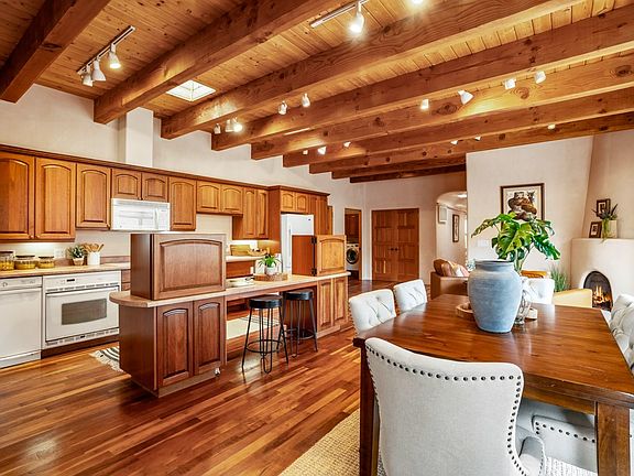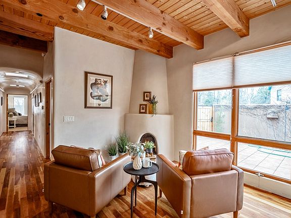 Western Area, Built in 2002, High-End Construction, Single Level, Spectacular Great Room, Air Conditioning, 2-Car Garage with Bathroom, Storage, and More! Upon entering the home, you’ll be greeted by solid cherry floors and tongue-in-groove ceilings with large exposed beams that flow through all the living spaces. Off of the entry foyer, you’ll find the great room. This room features lofted ceilings, skylights, a kiva fireplace, a sink/wet bar, and can be combined with the adjacent office and three-quarter bathroom to create a large bedroom/living room suite if an additional bedroom is desired. The kitchen features an island that separates it from the formal dining space, which includes another kiva fireplace for ambiance. The dining room opens onto the enclosed tile patio for elegant outdoor dining and entertaining. The primary bedroom also opens onto the patio and includes lofted ceilings, an en suite bathroom, and south-facing windows for great year-round sunlight. It also has a private sunroom for reading or enjoying indoor and outdoor plants. A guest bedroom is located at the end of the arched hallway past the primary bedroom and includes an en suite full bathroom for convenience. The third bedroom suite includes an additional living space and an en suite bathroom. The two-car garage includes a bathroom and separate 6 ft x 7 ft storage area that could also serve as a small shop or ski tuning room. The property features central air conditioning throughout the home, a wrap-around portal, a full alarm system for added peace-of-mind, and additional off-street parking. The seller plans to review offers on Monday, March 18, so schedule your showing today before the opportunity to own this unique property is gone!