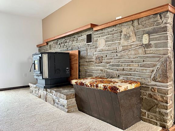 Check out this nice and clean ranch style home with 3 bedroom, 1 full bath home, that sits on 3.3 acres with some awesome views! Beautiful stone fireplace with a pellet stove connected, nice little breakfast area that has granite countertop, like new carpet throughout, large bedrooms, dining area, vinyl siding, 200 amp electrical service & furnace was installed in 2018. Nice field that could be used for horses, cows, etc. Large barn that is set up with chicken cages, room to store hay and more.