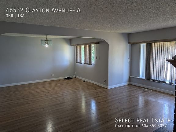 Option 1: Address: 46532 Clayton Avenue (Entire Home) Features: Price: $3295.00 5 Bed 2 Bath 2269 sqft. Driveway Parking + Small Garage Option 2: Address: A-46532 Clayton Avenue Features: 3 Bed 1 Bath 1269 sqft. Driveway Parking Lease Information: One-year Lease No Smoking Pets upon approval Backyard Shared Appliances Included: Fridge, Stove Washer, Dryer Furnace Hot Water Tank Tenant pays: 60% Hydro, Gas, Internet/Cable Deposit: Half Month's Rent Professionally managed by: Select Real Estate 520 - 45715 Hocking Avenue, Chilliwack, BC