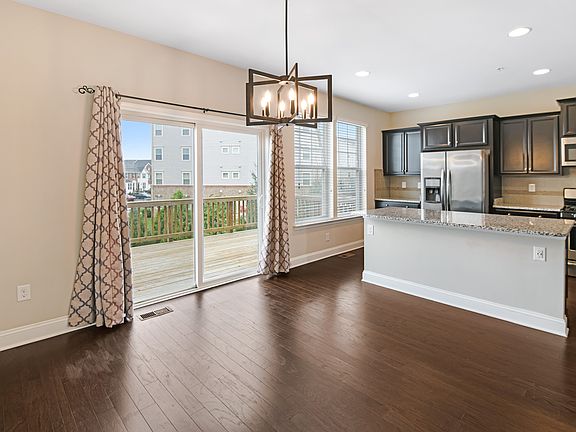 Available immediately! Nestled in the highly sought-after Manors at Ballenger Creek, this stylish and spacious three-level townhouse offers an open and modern layout on a premium lot. You'll immediately appreciate the hardwood flooring and soaring 9-foot ceilings throughout the main level, leading into a chef's kitchen equipped with stainless steel appliances including a gas range granite countertops, an expansive granite island, and a large space for a table perfect for entertaining or casual dining. Walk-out from the kitchen to the spacious deck. The master bedroom is a serene retreat with its own ensuite bath and large walk-in closet. The upstairs laundry room adds ease to everyday living. The upper-level is completed by an additional hall bathroom and two additional bedrooms. The finished lower-level family room opens to a patio, making the home ideal for indoor/outdoor gatherings. The two car garage provides ample parking and space for storage. The outdoor space, including the rear deck, patio, and fenced backyard make this home perfect for relaxing or hosting friends. With nearby parks, trails, shopping, dining, and commuter routes, this low-maintenance home is truly move-in ready just unpack and start enjoying.