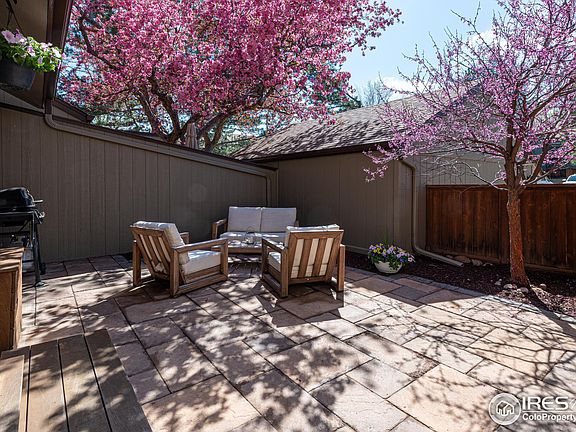 Welcome to this beautifully updated 2-bedroom, 1.5-bath townhome in the highly desirable Shanahan Ridge 2 community! Backing directly to a peaceful greenbelt at the Southern edge of Boulder, close to miles of world-class hiking trails, this home offers the ultimate Boulder lifestyle! Inside, you'll love the airy, open feel created by dramatic vaulted ceilings, setting this unit apart from the rest. The stunning gourmet kitchen has been fully reimagined with double the original storage space, luxurious quartz and butcher block countertops, stainless steel appliances, and a natural gas range-perfect for home chefs. Throughout the living space, you'll find a blend of real wood and cork flooring that adds warmth and charm. The lower level features gorgeous alder wood doors, lending a custom, high-end touch.This unit also offers modern comfort with gas heating and central A/C, keeping you comfortable year-round. Outside, you'll enjoy the large, private concrete patio with gardening space. This unit feels so private! Whether you're exploring the trails, relaxing on your private patio, or enjoying the quiet of the greenbelt, this home truly has it all.Don't miss your chance to own this move-in-ready Boulder beauty in one of the city's most scenic and sought-after neighborhoods!