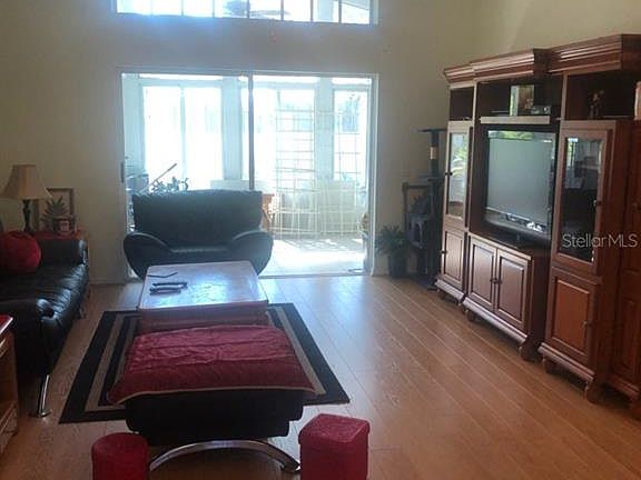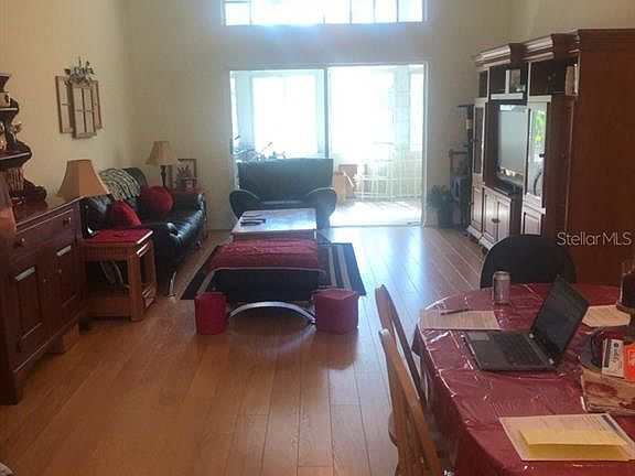 This home's large open floor plan greats you at the front door. Beyond the living room is a 3 Season Porch which then leads you outside to an open patio. Back inside is beautiful new laminate wood flooring in the living room and master bedroom. The other rooms will be completed March 6th. The house has a one year new roof, true split plan bedrooms, duel sinks in the master bath, walk in master closet and inside laundry. The house needs a little TLC to make this a dream home. There are NO CDD, the HOA is low and offers great amenities. There is a pool, playground, basketball, tennis, REC Center which is available to rent for a party and more!