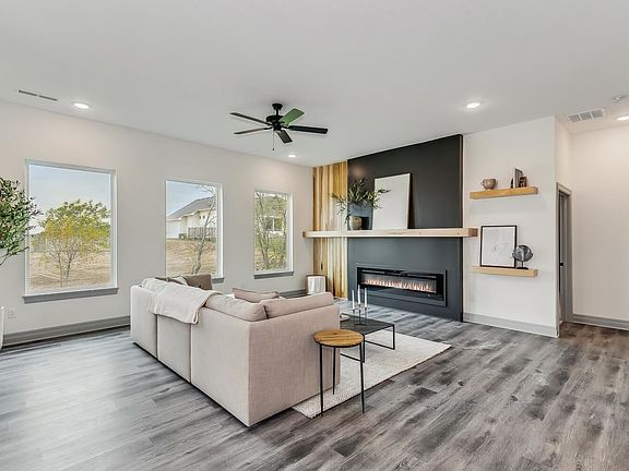 Outstanding plan with zero entry. This home features open kitchen, dining and living room with electric fireplace. Large walk-in pantry. Master bedroom with private bath with walk-in closet/storm shelter plus 2nd closet, walk0in shower and separate tub. 4th bedroom/office with French doors.