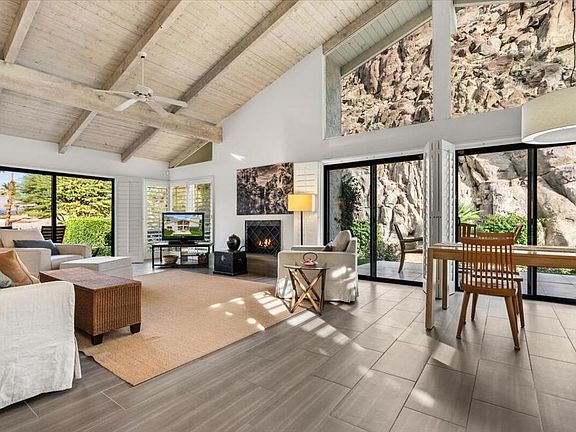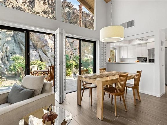 Nestled in the gated community of Mountain Cove in Indian Wells this beautiful 3 bedroom 3 bath en-suite home is a must see. With incredible mountain views and offered turn-key furnished this home boasts an open floor plan, 15 foot ceilings, exposed wood beams, fireplace, and an abundance of natural light that flows throughout the home. Enjoy cooking in the cozy kitchen w/ bar top seating, dramatic mountain views and opens up to the dining and living room. The primary bedroom is oversized with a spacious walk-in closet, double vanity, and private patio access. The additional guest bedrooms are all ensuite, with private patios, and views from every room. Enjoy entertaining or watching the sunrise on one of your three private patios overlooking the Chocolate Mountains and Santa Rosa Mountains. This home has low HOA's of $440/month and is also located in IID utility district. There are also two community pools for your enjoyment. In addition to 20% discounts on food & spa service at select restaurants and hotels in Indian Wells, Indian Wells Residents can golf at the Indian Wells Golf resort managed by Troon for low green fees. This will make or a great primary residence or second home! Call for a showing today!