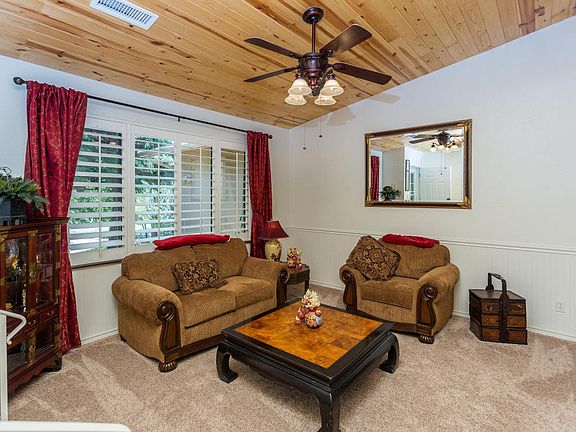 Beautiful single level ranch home on .82 acres , private and serene. Located at the end of a cul de sac with views of Granite mountain. Enjoy the separate living room and great room that looks out onto a private patio with outside fireplace. Updated Kitchen has beautiful hickory cabinets and granite counters .Remodeled bathrooms. Shows like a model home Large shed/and workshop plus storage in garage.Fully landscaped with native pinion and oak and plum, peach and cherry trees and bordering state land on one side. Beautiful tree lined driveway Must see! this is a show stopper.