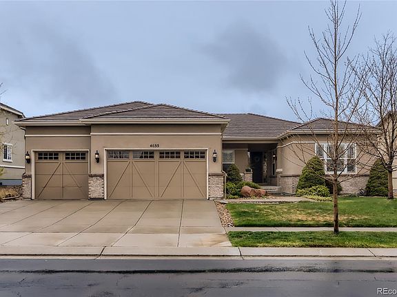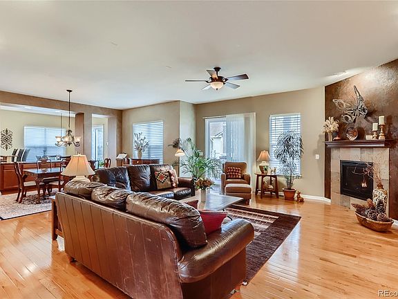 Vail Model home in the coveted Anthem Ranch, 55+ neighborhood with finished basement. This home features 4 bedroom/ 4 baths, on a quiet street close to the Aspen Lodge, the 30,000 sq ft recreation center for the neighborhood. An open, well loved floorplan, The Vail is perfect for entertaining and enjoying an open concept main level living. One of the best selling flooplans in Anthem, this home offers a gourmet kitchen with granite, rollout drawers, eat in breakfast bar, eat in kitchen and formal dining room. 1 pantry in the kitchen and 2nd one nearby in the mudroom. 2 sets of sliding glass doors go out to a large partially covered deck perfect for enjoying the Colorado evenings and sunsets. The dining room adjacent to the kitchen has a large serving island for big or small gatherings. The living room offers a cozy gas fireplace and large open space great for entertaining your guests and family. Extended hardwood floors give this home a welcoming atmosphere with silhouette shades, plantation shutters, surround sound pre wire ceiling fans and professional painting. The primary large bedroom has a door to the peaceful deck, 5 piece bath and walk in closet. A gorgeous feature in this home are the custom stained glass side light windows. Other features included humidifier, utility sink in the laundry with cabinets, extended garage and garage service door. The extra large office/den has double french doors and plenty of room to make this any type of work or play space you would want to have. The large finished basement offers 2 more larger bedrooms with closets, n a 3/4 bath, a rec room big enough to have game room, extra tv room or fitness area. Anthem Ranch has a perfect placement in Broomfield close to restaurants, shopping, Premium Outlet Mall, Orchard Town Center, Lafayette, Erie, Boulder, Denver and DIA. Over 40 miles of trails surround the neighborhood and over 130 clubs.