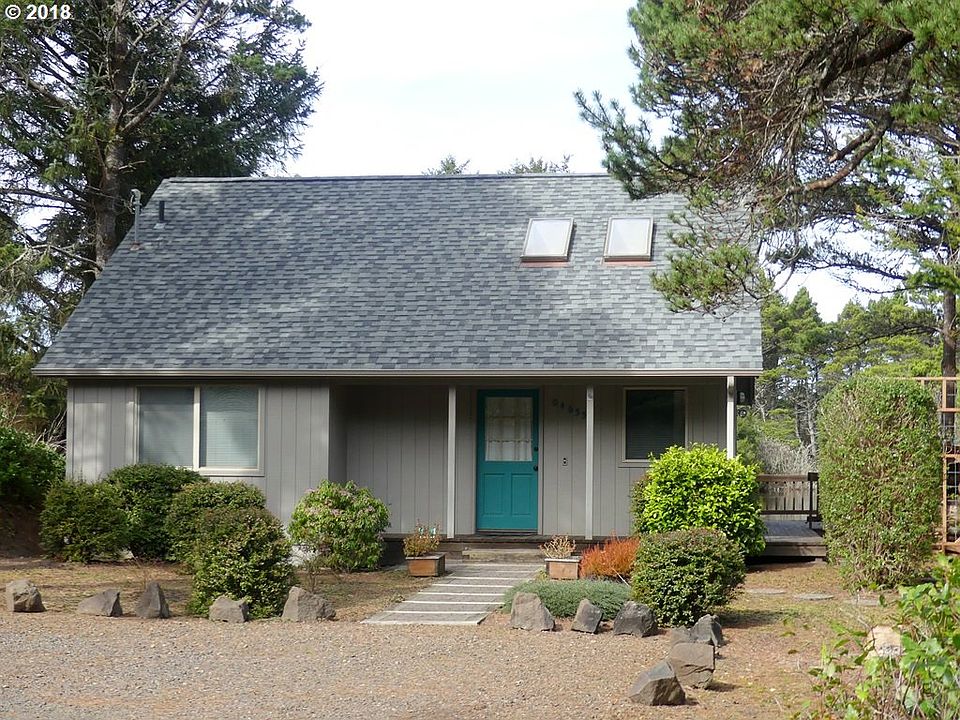 Delightful beach cabin just 2 blocks from the ocean! Well-maintained 2 bedroom, 1 bath plus loft features wrap-around deck overlooking seasonal pond - watch deer, bear & ducks on Nat'l Forest behind home from your living room & master bedroom. Bright kitchen with skylights; island with eating bar. Small shop with wood storage and cement floor. 2nd lot is wetlands. Newer windows, flooring, paint. Easy care landscaping, blueberries.