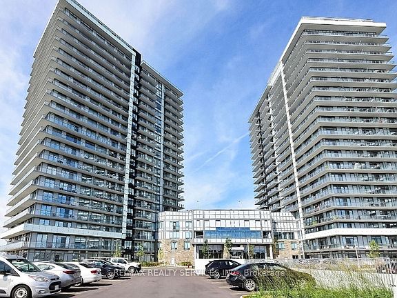 Welcome to this stunning 2 bedroom + den, 2-bathroom condo offering a bright, open-concept layout with nearly 9' smooth ceilings, wide-plank laminate flooring, and contemporary finishes throughout. The sleek kitchen features stone countertops and large stainless-steel appliances, flowing seamlessly into spacious living and dining areas that open onto a private L-shaped balcony with beautiful views of the CN Tower and Lake Ontario. Enjoy the convenience of ensuite laundry, one parking spot, and one locker. Rent includes heat, A/C, and water (tenant pays hydro). Exceptional building amenities include a rooftop outdoor pool, BBQ terrace, fitness club, lounge, and beautifully landscaped grounds. Perfectly located steps from Erin Mills Town Centre, Credit Valley Hospital, top-rated schools, public transit, and major highways.