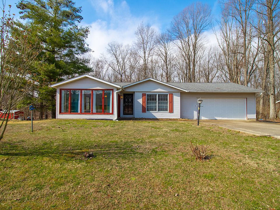 Charming home with great potential on Happy Hollow! This one-level floor plan offers 3 bedroom, 2 baths, flex space off of the living room and a 2-car garage. The fenced backyard is surrounded by a beautiful wooded backdrop. This quiet neighborhood provides country living with only a 10 minute drive to east-side shopping and a 12 minute drive to downtown Bloomington!
