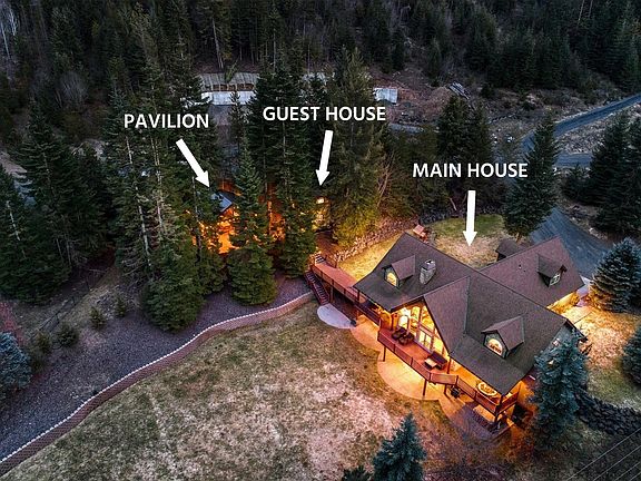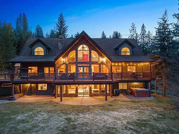 Welcome to your North Idaho RETREAT. Boasting CdA Lake Views out the back over Kidd Island Bay & sitting on 1.28 Acres w/ROOM for a SHOP, this 6400+ SF 5 BR (2 Primary Suites), 4.5 BA home features an expansive deck, level yard, captivating views & large windows to capture nature year-round. Two-story great room floods w/natural light from the view windows embracing mountains & the lake. MULTIGENERATIONAL w/detached GUEST HOME w/full kitchen, 1 BR & 1 BA is idyllic for extended guests or extra income & you'll love the Outdoor kitchen PAVILLION. Custom Mountain features of Stone & log accents, rustic luxury bedrooms & baths, high-end Stainless appliances including Smart Samsung refrigerator & an added walk-in pantry. Large Bonus Rec room in walkout lower level makes a perfect game room & Theater room upstairs is one of the many custom amenities. Easy 20 min drive to charming downtown CdA, shopping, schools, parks & more. No HOAs or CCRs. Make this your own private Idaho!