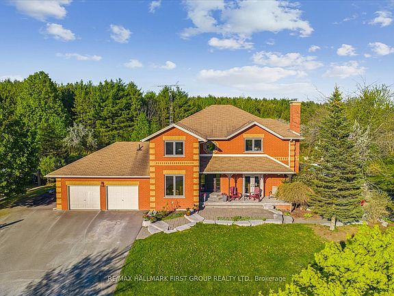 Welcome to a home that nurtures both comfort and connection. Set on 15 acres of peaceful countryside in rural Pickering, this custom-built 4-bedroom home offers nearly 6,000 sq ft of thoughtfully designed living space - a place to grow, gather, and enjoy life's quiet moments while staying close to every convenience. Step inside to a beautifully laid-out main floor where every detail feels intentional. The dining area features hardwood floors and a picture-perfect view of the surrounding landscape. At the heart of the home, the kitchen offers built-in double ovens, a gas cooktop on the centre island. Overlooking the sunken living room, a wood-burning fireplace creates a warm and welcoming space to unwind while admiring the natural scenery beyond. A private office with built-in shelving and hardwood floors provides a comfortable work-from-home retreat. Upstairs, the primary suite is a true haven with a walk-in closet, soaker tub, separate shower, and a walkout to a private balcony overlooking the fully stocked trout pond - the perfect spot for a peaceful morning coffee. Three additional bedrooms offer ample space for family, guests, or flexible living. The full walk-out basement expands your lifestyle with a large recreation area, a sound-proof media room, a convenient kitchenette, and access to a bright glass-enclosed sunroom - ideal for year-round enjoyment or stargazing in comfort. A new high-efficiency heat pump ensures comfort through every season. Outdoors, the setting is equally remarkable. Enjoy an in-ground pool, Arctic Spa hot tub, an electronic gate and outdoor lighting, apple trees, and endless space to explore. All new high-end energy star windows in custom colour and stained fibreglass entry door system. Garden doors and retractable mirage screens. Peaceful and private, yet just seven minutes to the 407 - this property offers the perfect balance of country living and modern convenience. This isn't just a home - it's a lifestyle meant to be lived.