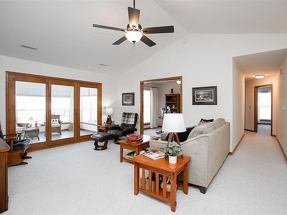 There's nothing to do but move in and enjoy this 1550 sq ft 2nd floor condo with 2 bedrooms, 2 baths, a 3 Seasons porch and an attached 2 car garage. Some of its features include a formal dining room, a kitchen with a breakfast bar, palladium window, newer stainless-steel appliances (new 12/21) and vaulted ceiling in the eat-in area. The vaulted great room has access through French doors to the 3 seasons porch and to the den/study/office. The opened den room allows light from its window to stream into the great room adding light even on the grayest winter day. The master suite includes a spacious walk-in closet with added shelving. A separate utility room finds the furnished washer and dryer and cabinets. Some of the updates include the following: new roof, insulation, AC, new windows (except for porch) all in 2021. The popcorn ceilings have been removed from most of the ceilings. There is an intercom to the secured front door. Low utilities. NO PETS. NO RENTALS. Buyer has a $400 HOA move-in fee collected at closing. Come see. You'll love to call this your home.