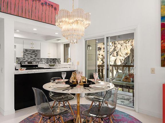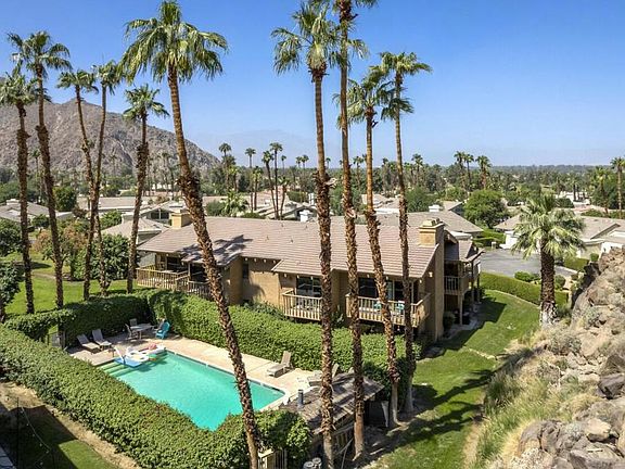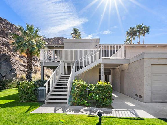 Welcome to Mountain Cove in Indian Wells! This guard gated community is popular due to its close proximity to Indian Wells Country Club, Indian Wells Resort and Indian Wells Tennis Gardens!This spacious fully furnished 2 bed/2 bath second level condo was updated in 2023. It is an end unit and boasts breathtaking mountain views from multiple outdoor sitting areas. Light and bright with soaring beamed ceilings. Some upgrades include white porcelain tile floors, new carpet in bedrooms, interior paint, upgraded lighting, kitchen cabinets, quartz counters, farm sink, new dishwasher and refrigerator! HVAC and furnace replaced 2020. Open living area features beautiful fireplace, built in TV, two balconies with VIEWS, VIEWS, VIEWS! Primary suite has a large walk-in closet, updated bathroom with dual vanity and more Views! Offered TURNKEY furnished and MOVE IN READY!Indian Wells residents enjoy golf and dining discounts at IW Golf Resort, Hyatt Fitness Center and free tennis tickets to BNP and more! This is a MUST SEE! Priced to SELL!