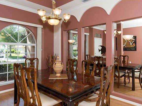 Terrific family home with four bedrooms, 3 baths plus a greenbelt view! A truly open floor plan for family activities and entertaining. Separate living and dining rooms plus family room/kitchen/casual dining. Split bedroom plan. Two bedrooms and bath with sliding pocket door for privacy. Third bedroom near third bath. Large master with sliders to covered lanai overlooking back yard and greenbelt. Two master closets including large walk-in. Spacious master bath has large garden tub with separate shower and dual sinks. Community pool and park. Low HOA fees! Great schools! Convenient to IH-75, UTC Mall, schools, restaurants and our famous beaches!