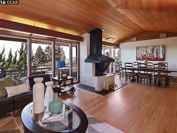 Breathtaking Mid-Century with modern upgrades and sweeping Bay views! Main lev incl's a lrg open kitchen w/ eat-in area & French drs to a picturesque bkyd, combined din/liv area w frplc & deck w stunning views, 2 bd, 1 ba, hdwd flrs. Lower level incl's very impressive master suite w/ spa-like bthrm