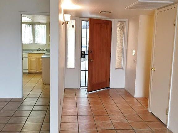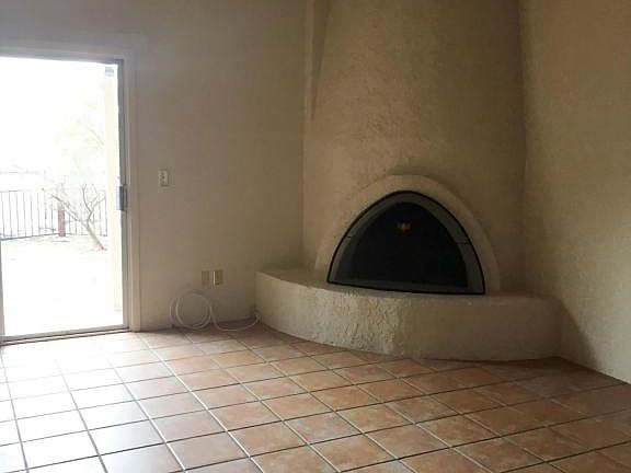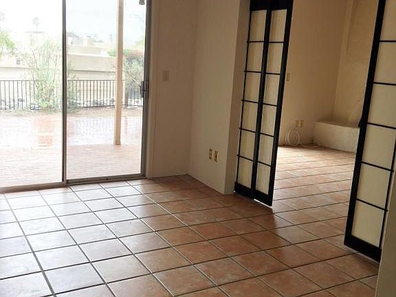 Fully tiled Foothills Townhome . End unit close to pool. Nice natural desert next door. Two bedroomsplus den with lovely paneled sliding doors to open up or keep private den. Beehive fireplace in large living room. Kitchen open to living space. Twocar garage. Security doors and window bars. Nice territorial wood front door. Big shower off master with much closet space. Extra storage. Greatlocation in the Foothills....