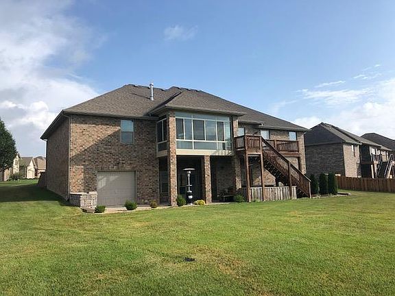 4656 E. Kentbrook Springfield MO. Custom built builders home with all the extras in the great neighborhood of The Lakes at Wild Horse! This beautiful home has a great lot that overlooks a pond. Inside the home there is an open floor plan with raised ceilings, lots of crown molding, split bedroom floor plan, hardwood floors, and so much more! Amazing master suite with huge 3 level closet and amazing shower! 5 bedrooms, 3 bathrooms. The kitchen has upgraded appliances. The basement is great for entertaining, there is a full kitchen with a media room and another large living area. There are also 2 more bedrooms and another bathroom and could be a 2nd washer / dryer hookup. In the back there is a covered patio with a built in hot tub and built in grilling area. There is also a 3 car garage plus a John Deere room.