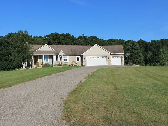Privacy at it's best. This house sits on 11.25 acres with lots of open area, a horse lovers dream. This house has an open floor plan with custom cabinets and a very large kitchen. The great room features 15 foot ceilings with a stone fire place and log interior. The back entry features a mud room with individual lockers and lots of storage. The house has an attached three stall garage and also a 30x50 pole barn.