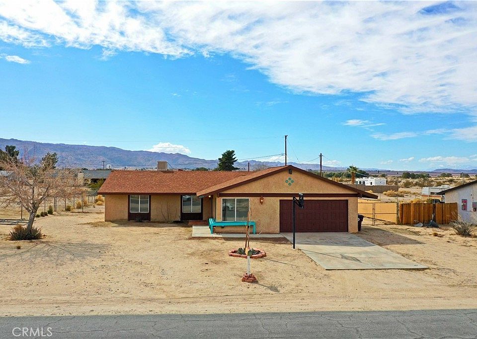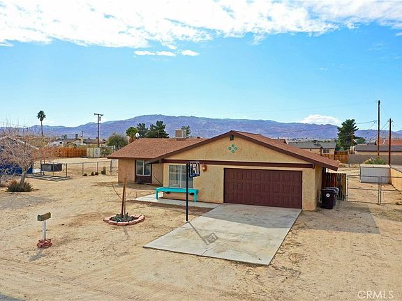 Location, Location, Location....Truly exceptional, the functional floor plan features an inviting interior that is bright and sunny and features generous living spaces, large windows and high ceilings. This 4 bedroom 2 bathroom is exactly what you've been looking for. Sized for comfort, the spacious main bedroom comes complete with a private bathroom and a large closet. Step out the front door to breath taking desert views. The large fenced-in backyard features a covered patio with an HUGE ENCLOSED PATIO SUNROOM for soaking in the desert rays. New flooring throughout. Double garage. Look at the front door to a desert play ground. A place where wonderful memories are made. Just minutes from the Joshua Tree National Park and local favorites: Farmers market, casino, golf course, and Campbell Hill Bakery. Your search for the finest rural living is over. In a scenic quiet spot located in the peaceful Twentynine Palms neighborhood of Sunmore Estates. Be prepared for 'love at first sight'. Early viewing is recommended. Don't let this desert gem slip by. *Please note: this wonderful house has 4 bedrooms but public records show 3. Owner will help buyer with closing costs,