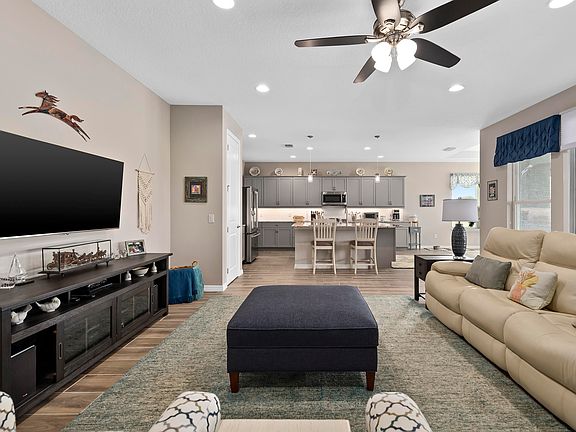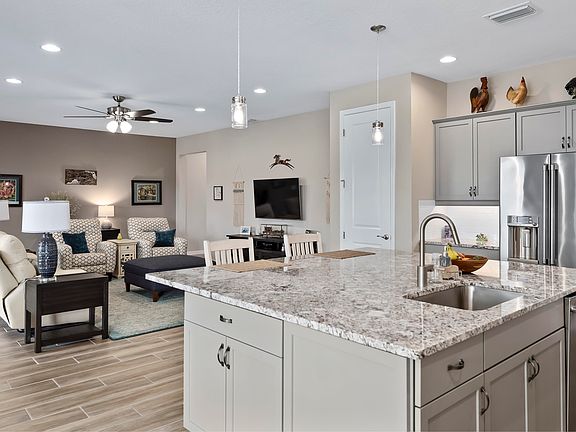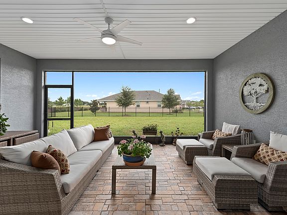 GORGEOUS and rare 3 bedroom 2.5 bathroom, 3 car garage, Proclaim model in the exquisite Trilogy at Ocala Preserve community. Resting quietly on an oversized quarter acre corner and fenced in lot with only one neighbor this home boasts nearly 2,200 square feet of open living space. Through the upgraded glass insert front door you are immediately greeted with high end upgraded wood like tile throughout the first floor living areas. Immediately to your left you'll find your office/flex space complete with large windows and french doors - perfect for a hobby space or a guest room. To your right, you'll find the 2nd and 3rd bedrooms - both generous in size, with ample closet space and plush high end carpet. The two bedrooms share a nicely sized