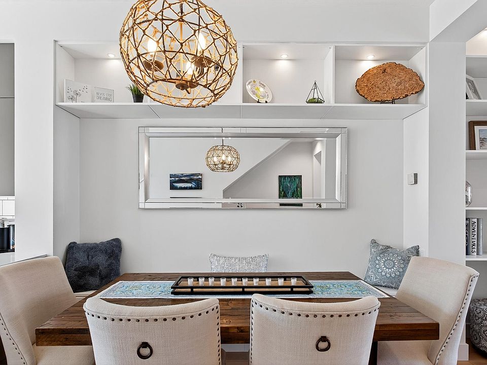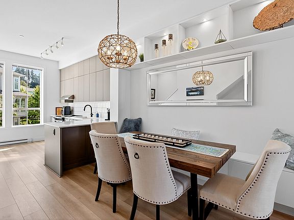 Welcome to this beautifully updated home in a great location in the highly sought-after Seaside community! Recent renovations include new carpets, custom built-in cabinets in the dining & living rooms, & closet organizers. Featuring an open concept floorplan, 10ft ceilings, & large sunny windows throughout. The stunning kitchen showcases stainless appliances, quartz counters, ample pantry storage, & under-cabinet lighting. Upstairs you'll find 2 generous bedrooms & 2 full baths, while the entry level includes a versatile den, powder room, & a garage with plenty of storage. The complex has great amenities including a pool, gym, & games room; plus close proximity to schools, beaches, & shopping. Quick possession is possible. Open House Sunday Nov 9, 2-4pm!