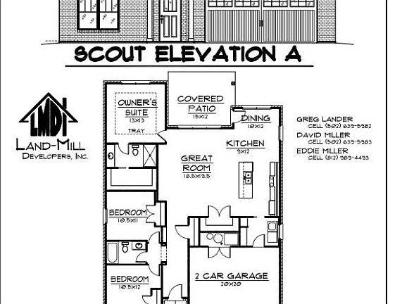 Land-Mill Developers, Inc. presents LOT 206 SCOUT FLOOR PLAN, Elevation A on a SLAB. Your dream home awaits!! This split bedroom floor plan features a COVERED PATIO. This floor plan is open and spacious! These homes are all brick with occasional hardie board and/or vinyl accents for Craftsman styling. Tile backsplash in the kitchen. Tile shower in primary bath. Bullnose corners and smooth ceilings. Open green space land behind = no neighbors and privacy! Feels like the country.