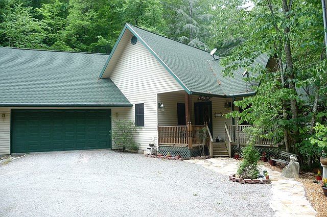BOLD RUSHING CREEK!! and NOT in the flood plain! Cross the bridge over wide fast flowing Wayah Creek to this sprawling one level home that is warm and inviting with its open floor plan and wood burning stove. 2Bd,2Ba with a bonus room that can be a 3rd bedroom or use as an office, TV room or whatever you want it to be and has access onto the wide spacious deck that spans the entire front of the house. Septic permit is for 3 Bd. Access from the main living area as well as the master bedroom. Oversized 2-car attached garage with room for an extra workshop as well as storage galore. A separate 20' x 40' workshop with storage and paved covered parking to the side for the RV or camper. This remarkable property is one of a kind on desirable Wayah Creek Rd.The house is positioned so that in any spot on the deck or porch you will enjoy the ambiance of this creekside setting. Handicap accessible.