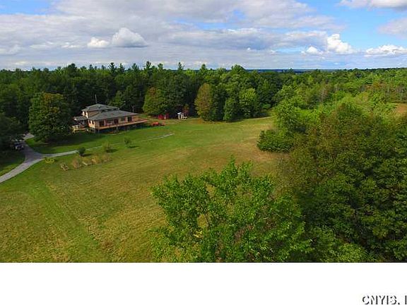 Private & country 5BR/2.5BA newer custom contemporary residence(3600 sq.ft.) situated near the St. Lawrence River/1000 Islands on 35 acres. This would make an excellent horse farm or escape from the city. Solid birch cabinetry w/island. huge open living & dining area which opens up to a wrap-around deck w/hot tub. Native SS wood burning fireplace, large master Br/Ba w/shower & Jacuzzi tub. Office space, attached 2 car garage, In floor radiant heat, all Andersen windows & doors, etc. Enormous full basement w/walk-out and overhead door for easy access, 30'x 24' insulated bldg. w/elec AWESOME!