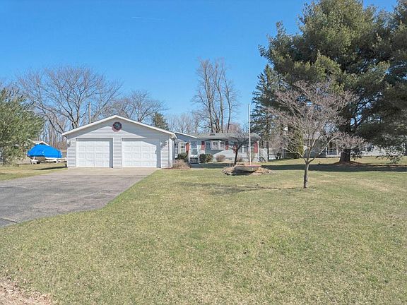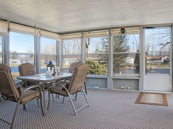 ENJOY LAKE LIVING NOW AT ITS FINEST IN THIS METICULOUS KEPT HOME ON ALL SPORTS DESIRABLE LAKE OF THE WOODS! Sitting on 75' of swimmable, clean, no wake channel with permanent pier, and a empty lot next door, this home is turn key and move in ready! The open concept of this home will surely impress with its Knotty Pine, hand stained walls by the seller themselves, ceiling fans, a large living area, and a lovely sunroom facing the water. The kitchen features vinyl floors, Oak cabinets, butcher block counters, reverse osmosis system, skylights, desk & computer area, and a cute adjacent dining area. The master suite has duel sinks, ceramic floors, and a shower with tub. The furnace is less than 3 years old. There is also a 2 car detached garage & shed to store your lawnmower and lake toys!