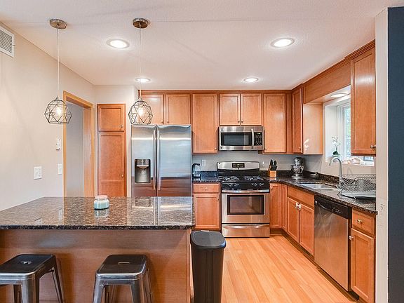 Buyer agent to verify all measurements. Only one showing at a time. Please use your Covid-19 knowledge when showing this place. Great split level home with granite counters and hardwood floors throughout the main level. There is a 3 seasons porch off the back to over look the larger private yard. It is within a couple miles of Lebanon Hills Park and other parks.