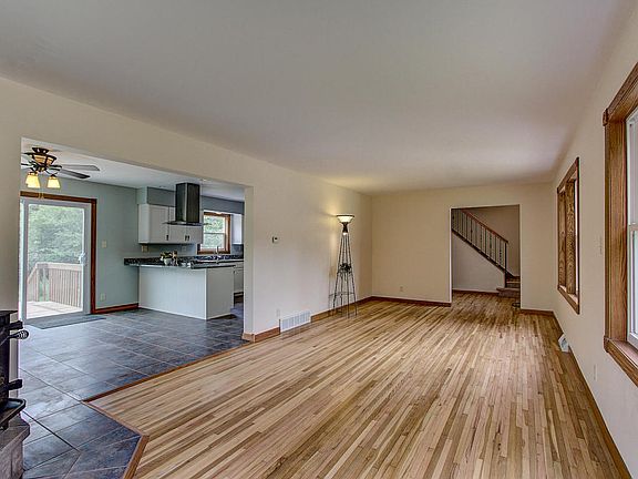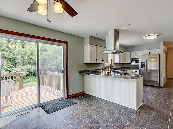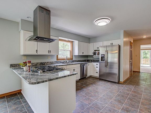 NEW PRICE! Please call to schedule your showing; this shouldn't last long now! Serenity and privacy can be yours yet less than a min. from Hwy 41, this home sits on a 1.76 acre lot and is tucked away at the end of a long driveway, surrounded by state land, and neighbor's wooded lot. Steps from Ice Age Trail. Private yard. 4 full bedrooms up, gorgeous wood flooring in LR with rustic stove, large FR, stunning KIT with CT, Granite, high-end GE S/S Appl pkg, 2 new sets of patio doors, 2 decks, totally updated BAs, 36'x24' GAR fits 3+ cars (2 doors). Slinger schools. ONE YEAR HOME WARRANTY INCLUDED