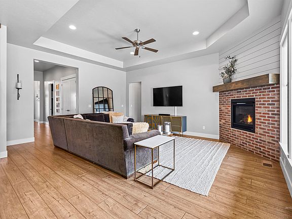 SELLER TO GIVE 10K BUYERS BONUS TOWARD CLOSING COSTS OR RATE BUY DOWN. This 2018 move in ready Gardner built home has been meticulously maintained! Desirable Bridge Tower West has two parks, community pools, cobblestone streets and walking trails. Sought after rambler on corner lot, fully fenced with back patio privacy fence. Open concept kitchen and family room with gas fireplace. Kitchen with Bosch appliances, walk in pantry, quartz countertops and large island with breakfast bar. Upgraded new lighting, new roller cellular light shading blinds with shutters in front half of the home. Primary bedroom with back slider and separate from the other two good sized bedrooms/split bedroom floorplan. Primary bath with huge walk in closet and another full bath both with tiled floors. Two car tandem garage with side door. Utility room with shelves and sitting bench built in.