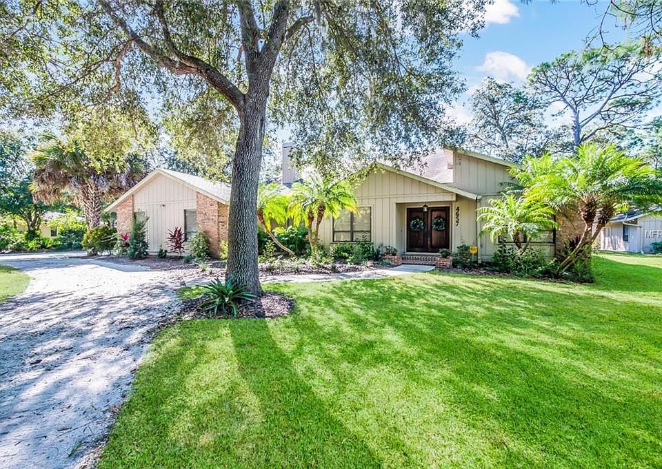 Spectacular Renovation in Hidden Oaks with detached Mother-In-Law Suite & 5 car garage! This magnificent property sits on a 1.36 acre corner lot. The Main home features 4 bedrooms, 2.5 bathrooms and a large South facing pool with all new paver deck. The nearly 3600 sq ft of air conditioned space is spread over 2 floors with 16 ft soaring ceilings. This home feels bright & spacious but lives cozy thanks to the rich wood accents, centrally located designer kitchen & the stacked stone fireplace in the family room. The kitchen is a cooks dream w/ endless white quartz countertops, expertly stained wood cabinets & new SS appliances including a double convection oven, farmhouse sink, french door refrigerator & dual zone wine cooler. The split floor plan offers 2 bedrooms w/ shared bath on the East wing & the huge Master Suite & office (4th bedroom) occupy the West wing. A well appointed laundry room and separate mud room complete the 1st floor. The loft space above offers perfect flex space and could easily be converted to a 5th bedroom w/ half bath. The detached Mother-In-Law Suite has a kitchen space (just add microwave and fridge), a separate living room, bedroom, bathroom and laundry hookups. This space is truly self sufficient and can easily accommodate an aging parent or play host to your weekend guests. If you're a car enthusiast, a hobbyist or just need a lot of extra storage, the 5 bay detached garage has everything you need. NOTE: Buyer's agent must be present for all showings to receive compensation.