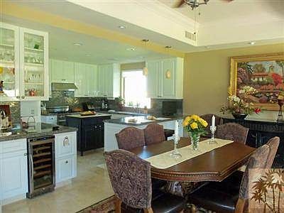 Professionally Remodeled Condo in IWCC overlooking a green belt and lake area and a community pool. This Decorator Furnished Condo has 3 bedroom suites, each with its own walk-in closet and attached bathroom with slab granite counter tops and a separate office area with its own entrance and heating and cooling unit. The extended master bedroom suite includes a sitting area while the master bathroom has been completely remodeled. The 2 guest bedrooms suites open into a private atrium with travertine flooring and a large built in BBQ Island including a fridge. The Gourmet Kitchen features slab granite counter tops, custom finish raised panel cabinetry and new appliances including a wine fridge. Other features include an entertainment center with 73 inch TV, a large granite fireplace, custom travertine floors, new high efficiency windows and sliding doors, new high efficiency HVAC systems, custom window coverings and valances, tile and wooden base boards, custom lighting and upscale fans throughout.