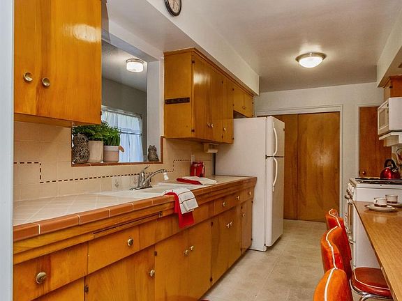 Mid-Century Ranch style home that has so much original charm and character. Owned by the same family for 50 years! Looking for new owner to love. Living room and dining room are connected and just off the galley kitchen with the original antique stove that is so popular now. Down the hall you will find two guest bedrooms, a large family hall bath, and an owner's suite with a cute bathroom. Lots of original features such as coved ceilings, and wood floors. Many updated features too such as windows, roof, AC. Don't forget the additional bonus room which has many potential uses. The large yard has mature fruit and nut trees, for your enjoyment.