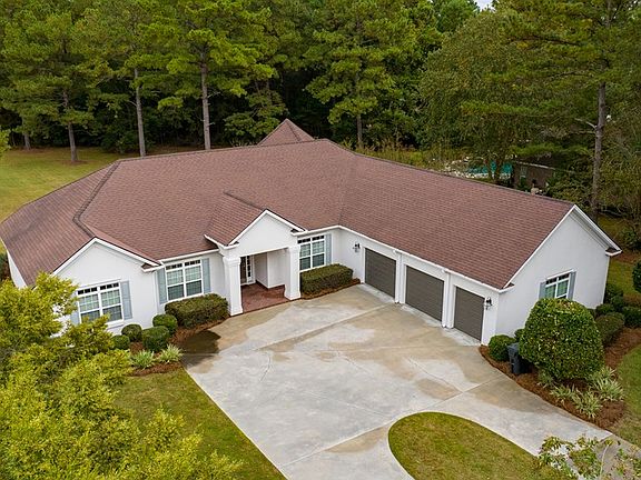 This 4br 3ba home sits on the tee box for the 13th hole of Stone Creek Golf Course. 1.55 acre lot is very private w/woods on back side. Foyer opens up into living room & dining room. Kitchen is open to the family room w/lots of windows & built-in cabinets. Kitchen has high ceilings, breakfast area w/bay window, breakfast bar seating 6-7 people, solid surface countertops, pantry & built-in desk area. Two guest bedrooms at one end share Jack-n-Jill bath w/barn doors on each side, double sinks & tub/shower combination. Large master bedroom with bay window over looking back yard, wood floors & his/her closets. Master bath with tiled shower, seamless glass enclosure, jetted tub & double vanities. Guest bedroom on master side w/full bath that has tiled shower & access to back porch. Wood floors throughout most of the home. Large windows & lots of natural light. Laundry room w/two closets, cabinets & sink. 3 car garage w/side entry access. Covered back porch. HOA $70 per month.