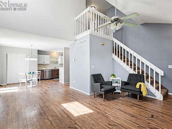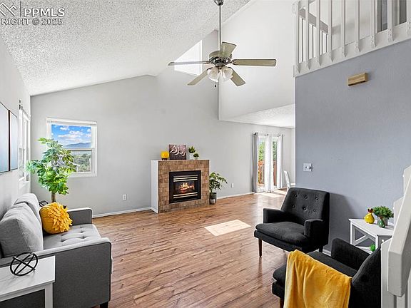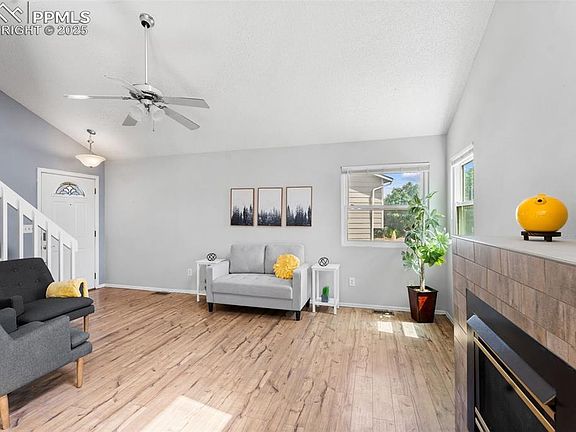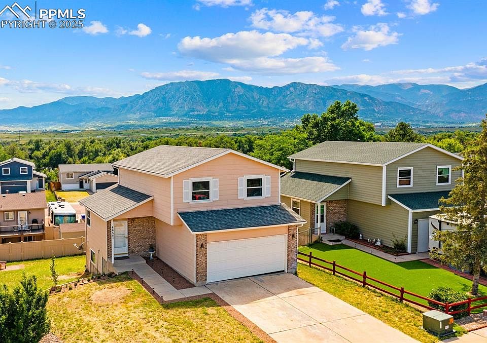 Beautiful 2-story home located in Bradley Ranch featuring 3 bedrooms, 2 bathrooms, vaulted ceilings and an attached 2-car garage. Enjoy cozy evenings by the gas fireplace and cook in style with newly renovated kitchen cabinets and a modern tile backsplash. Fresh landscaping throughout the immensely sized lot enhances the home’s curb appeal, while the wood deck in the backyard offers stunning mountain views of Pikes Peak—perfect for relaxing. Bright, functional layout with natural light throughout. The unfinished basement offers a blank slate and the potential for a walk out. A beautifully maintained home in a peaceful setting—don’t miss this opportunity!