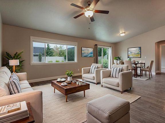 Charming 3 bed 2 bath home in North Meridian features vaulted ceilings, a spacious kitchen with a dining nook and open to the great room. Master suite includes dual vanities and a full tile walk in shower. Backyard is custom landscaped and faces east for plenty of shade! Lawn maintenance included! All appliances plus newer water softener included EXCEPT washer/dryer. Highly desirable Oaks community minutes from Costco and Owyhee High school featuring a community pool! for an application go to boiseriverpm dot com and apply under the tenant tab Tenant pays all utilities. Excellent neighborhood with a large park and community pool!