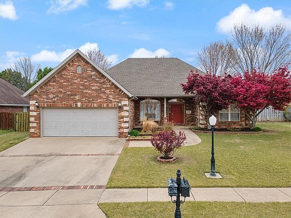 Welcome to this gorgeous 4bed/2bath home with bonus flex room in the elegant Stonewood neighborhood. From here, you can WALK to the Razorback Greenway, Lake Fayetteville, & Botanical Garden of the Ozarks! Lush, professional landscaping (with irrigation system!) welcomes guests to the covered front porch. Enter & admire the glistening wood floors, stately fireplace and the tray ceilings of the living room, then turn your gaze to the functionally-designed kitchen (fridge included!) with abundant storage and bonus peninsula countertop. Expansive primary suite features tray ceilings, wrap-around, walk-in closet (it's a must-see!) & spa-like primary bathroom. The 3 additional bedrooms all have ample space & storage for any needs you may have. Front exterior features beautiful uplights to accent the home once the sun goes down and fully-fenced backyard features covered patio & additional landscaping. Minutes away from NWA Mall, Springdale and Paradise Valley Athletic & Golf Clubs, shops, businesses, & restaurants galore!