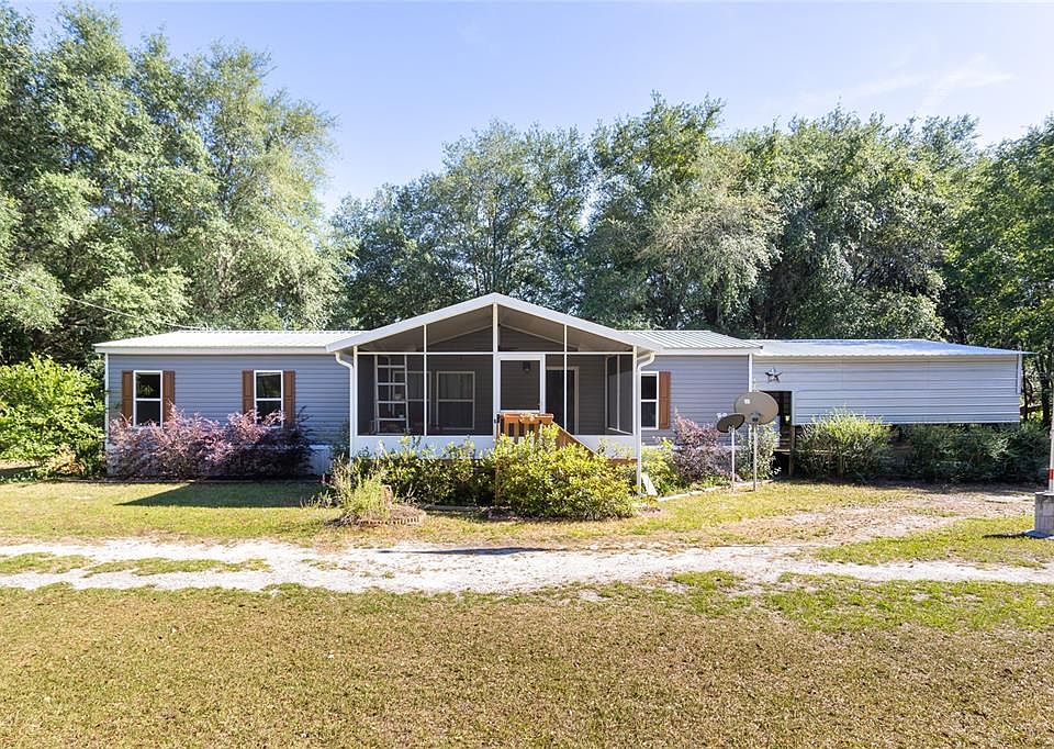 Super Charming 3 Bedroom 2 Bathroom DWMH on 4 ACRES awaits you in BEAUTIFUL Columbia County! Welcome to your slice of idyllic country living! Tucked away from the road, this property will have you feel like you own more land than you do but easily maintainable as it's not all pasture and it backs up to 164 acres of agricultural land. Relax and take in the view on your oversized screened porch or step inside and beat the heat with your spacious open concept floor plan. Cook for your family or host a gathering in the expansive kitchen with island and eat-in dining area or watch a movie together in the living room. There's plenty of closet space in this home as each bedroom has a walk-in closet. The owner's suite also features a roomy bathroom. The other 2 bedrooms share a bathroom. The laundry room leads to an addition for extra storage! Head to the backyard by using the rear covered porch with your choice of an accessible ramp or steps. Fully and cross-fenced with a corral so you can have a pig, horses, or even a cow. With irrigation throughout, enjoy gardening and the already present flowers and plants such as several different roses, pear tree, fig tree, azaleas, cedar trees and more! There are two outbuildings both with electric, one with plumbing. The larger outbuilding has a concrete slab and wench on one side too! Bring your chickens and keep them in the coop made for your poultry to call it home. The property sits on a paved road, with a grassy dirt driveway leading you home through two gates, one electronic, for your security and peace of mind. Come see in person everything your future home has to offer you!