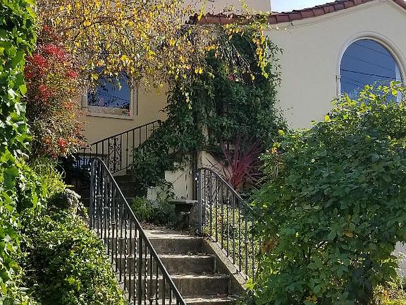 Mediterranean Style: 2++ bedrooms, 1.5 Bathroom, dynamic upper Glenview neighborhood. Quiet street. Fabulous San Francisco Bay views. European kitchen. Perfect entertainment home opening out to gorgeous backyard. Front and back gardens have automatic watering system. Great commute to East Bay and SF. Many UPGRADES: new heating system, asbestos abatement, gas fireplace, refinished hardwood floors. A plus room perfect for 3rd bedroom, family room, or home office, approx. 300 square feet not included in measurement.