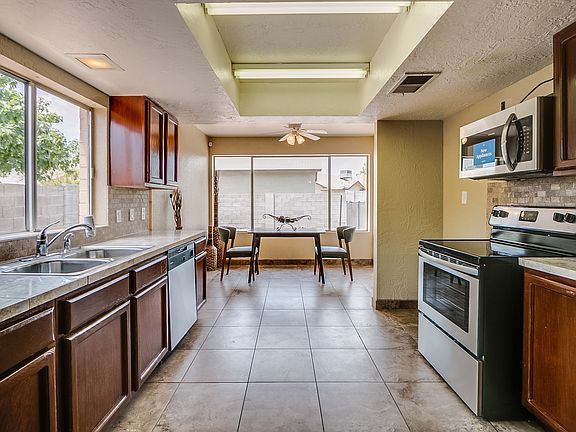 Relax by the pool or gaze at the stars next to the firepit at this one-story Glendale home! Step inside and you will find soaring ceilings and lots of natural light. The eat-in kitchen offers stainless steel appliances and opens up to the Family room. The Master bedroom features an ensuite bathroom with dual sinks and a step-in shower. Enjoy close proximity to groceries, a neighborhood park and playground, and dining options! Accessible via I-17. This home comes with a 30-day satisfaction guarantee and one-year premium warranty. Terms and conditions apply. Open House: Mon-Sun, 6am-9pm
