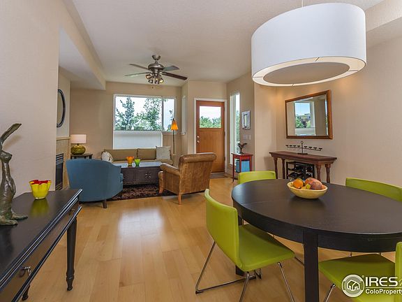 Facing the Holiday neighborhood Park - this townhome is loaded with contemporary flair and upscale finish. Three levels up plus finished basement offers easy living and room to spread out. Rooftop spacious deck with inspiring Flatiron views. Stainless kitchen with GE appliances, undermount sink, built in micro. Wide plank laminate wood floors. Living room w gas fp. Covered front porch surrounded by flowering gardens. All bdrms w private bath. One car garage plus assigned parking.