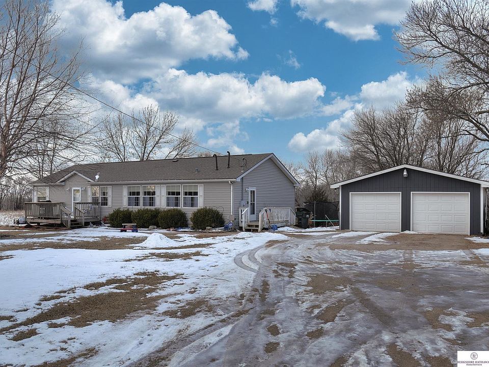 Come see this 3BD 2BA on 10 acres in Fort Calhoun! Split floor plan and a deck on the front and back. Boasts 2 car detached garage, 2 storage sheds, and a conex box for all your storage needs. This lot offers wildlife galore and some of the best views in the area, especially during the 4th of July. Don't miss this acreage on public water! Private showings start 2/4/22 at 11AM. Open house on 2/5/22 from 1-4PM. Being sold ''AS IS'', AMA. Trampoline, pool, and wood swing set to stay.