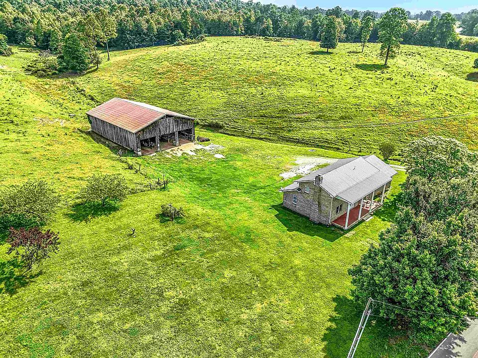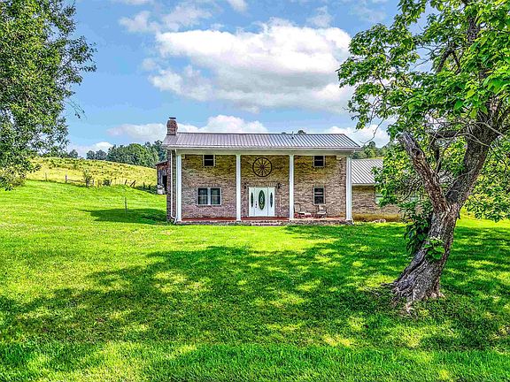 The Seller is providing a paid 1 year home warranty to be paid at the closing. Welcome to the farm, this expansive recently surveyed 54 acre farm host lush pastureland ideal for animal grazing and hay field use. Its located less than 5 miles from town, making local conveniences at your fingertips. This farm could be perfect for those seeking a rural lifestyle and offers ample space to continue to grow. Originally part of a larger farm, 54 acres has been surveyed off in 2024 and 3 sides of the land already has sturdy fencing allowing you the freedom to customize and fence off other sections to suit your needs. The land has a massive barn with an upstairs loft, small natural spring and wooded areas great for hunting or exploring. This land has No restrictions so if you want to build structures, ride your horses or raise animals, its yours to do as you please. The brick farmhouse was built in the 1980’s yet has that old southern feel to it. With a grand front entrance and a beautiful front porch, this home is a must see in person. The home features oak flooring throughout and marble windowsills. The kitchen has solid oak cabinetry and appliances stay with the home, the living room/dining room has an open concept with a beautiful brick fireplace that can be easily hooked up to propane and can be used as a backup heat source. There is a small bedroom on this main level and a full bathroom, there is also a spacious room just off the entrance of the garage into the home that could be made into a large mudroom/laundry room. The laundry room is currently located in a boxed in area in the unfinished garage. A beautiful oak staircase leads upstairs to another level where you will find 2 large bedrooms and another full bathroom. Recent upgrades include a metal roof installed in 2024, new soffit, upper-level bathroom has a new bathtub, new blinds throughout the home and several other upgrades. With your vision this beautiful farm offers many possibilities.