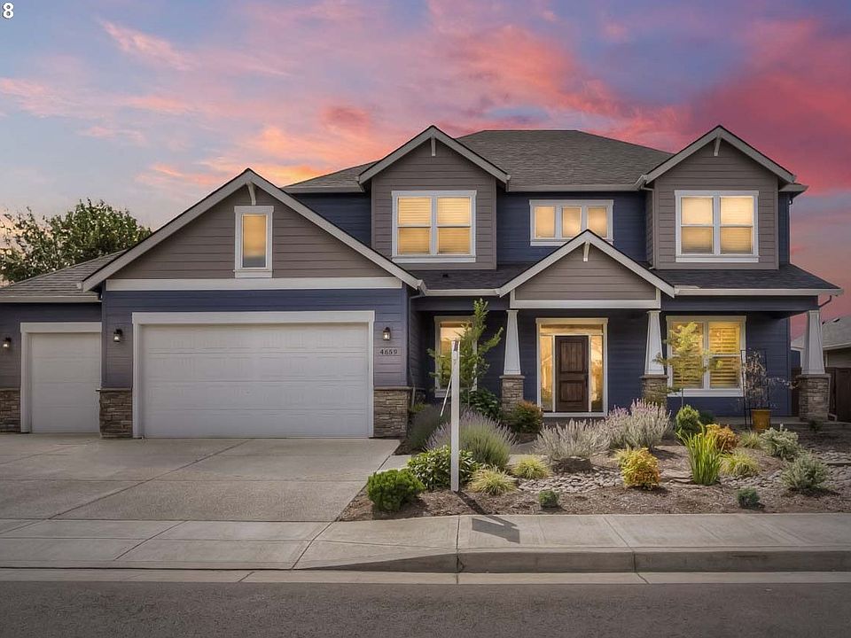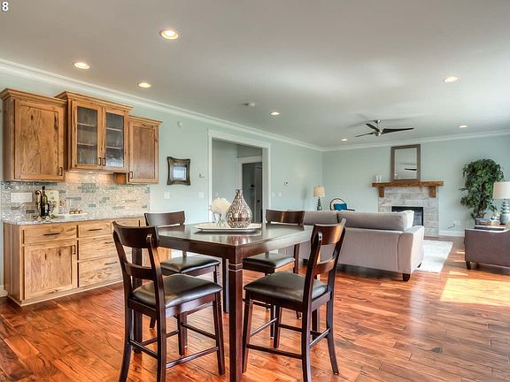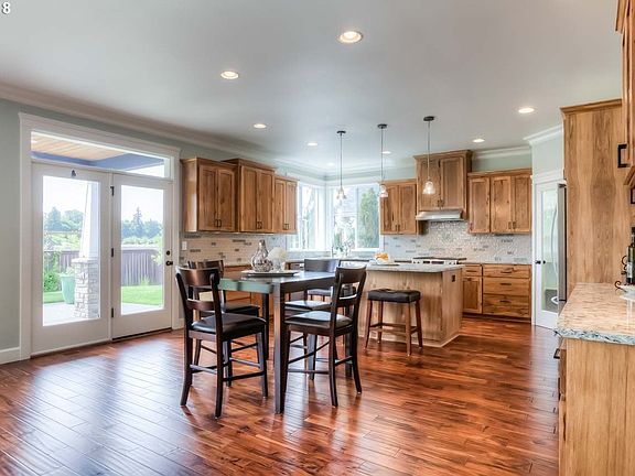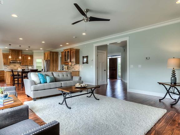 Enjoy quiet summer evenings on your covered patio with views to the west; adjacent to Keizer Rapids Park. Quick access from Tate Estates to park. Flooring is distressed Acacia hardwood, hickory cabinets, quartz counter tops & stainless steel appliances. Gas fireplace in great room. Custom silhouette and motorized blinds throughout home. Office w/ murphy bed on main floor. 3-car garage. Outdoor sprinkler system. Wired for HT.