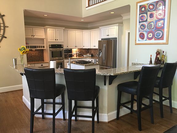 - Kitchen Features: Breakfast Bar, Eat-in Kitchen, View to Family Room, Stone Counters, Kitchen Island, Cabinets White