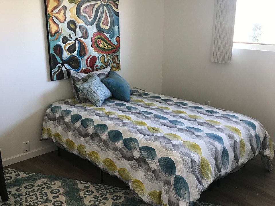 Accepting applications for next available apartment. Partially remodeled one bedroom, new shower and tub surround, and counters, ALL NEW wood laminate flooring throughout, new electrical switches, PLUS new DUAL PANE windows. Huge kitchen with breakfast counter, central air and heat, off-street parking, private patio, kitchen with breakfast counter, walk-in closet in bedroom, this apartment has everything $1375/month one year lease, no pets please. Rent includes water, sewer, trash, and one assigned parking space Owner pays water, sewer, trash